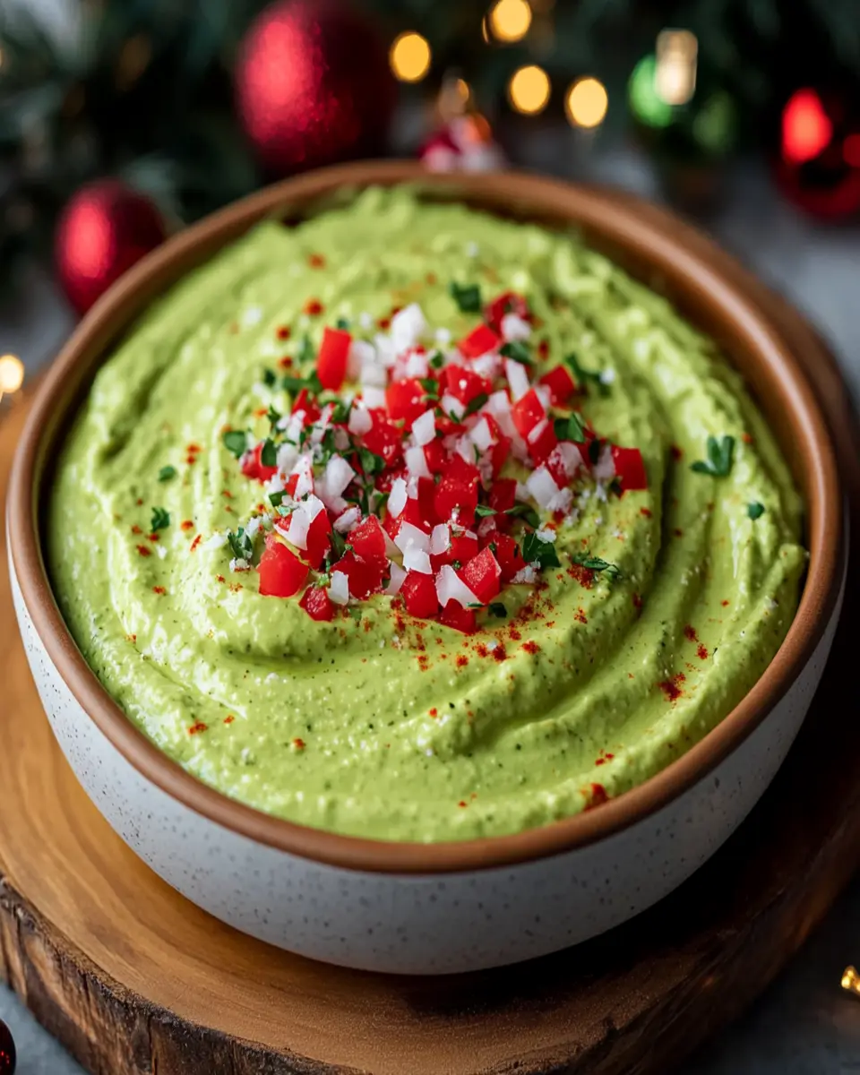Imagine a creamy blend of avocado, cream cheese, and sour cream, perfectly seasoned with lime juice and spices, all topped with vibrant green onions and cilantro. It’s a dip that brings the spirit of the Grinch to life, transforming your party into a festive feast. Perfect for young professionals and homemade-food lovers alike, this recipe is quick and easy to prepare, ensuring you spend more time enjoying the company of your loved ones rather than slaving away in the kitchen.