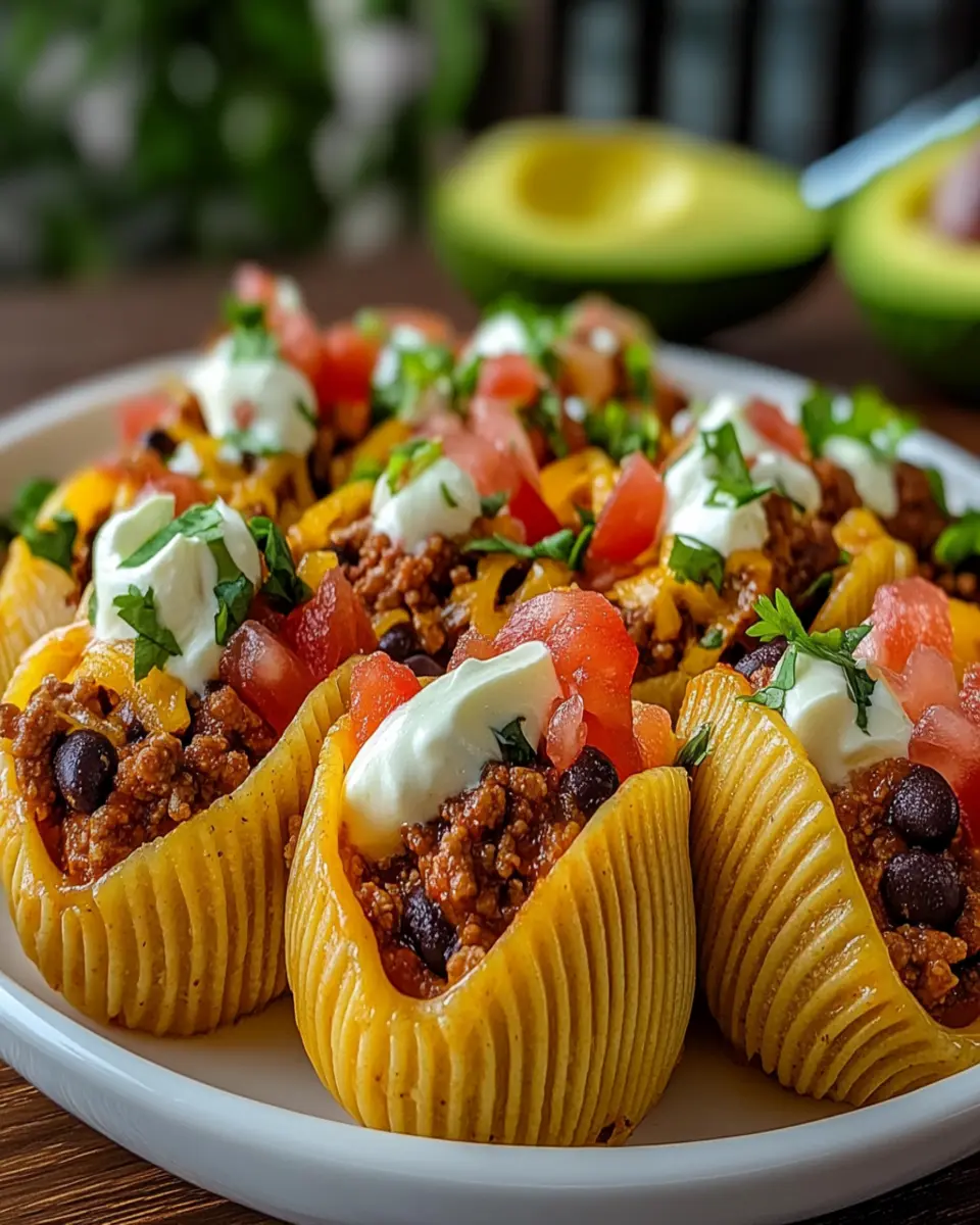 Taco stuffed shells are a delicious fusion of Italian and Mexican cuisine, featuring large pasta shells filled with seasoned ground beef, salsa, and topped with cheese. They are baked until golden and served with sour cream for a delightful meal.